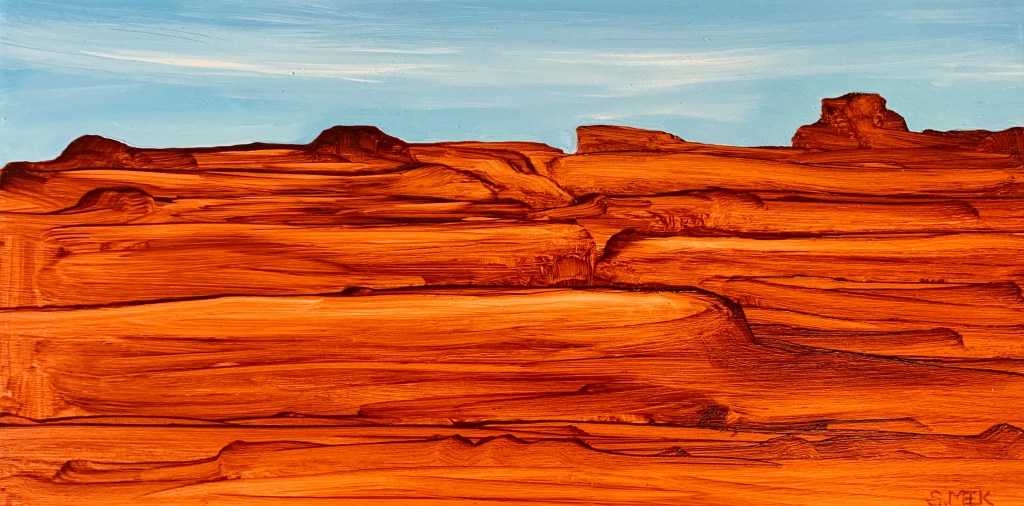 This series brings me back to my roots in Italian oil painting. These paintings are inspired by the vast open spaces and the breathtaking rock formations of the American Southwest.